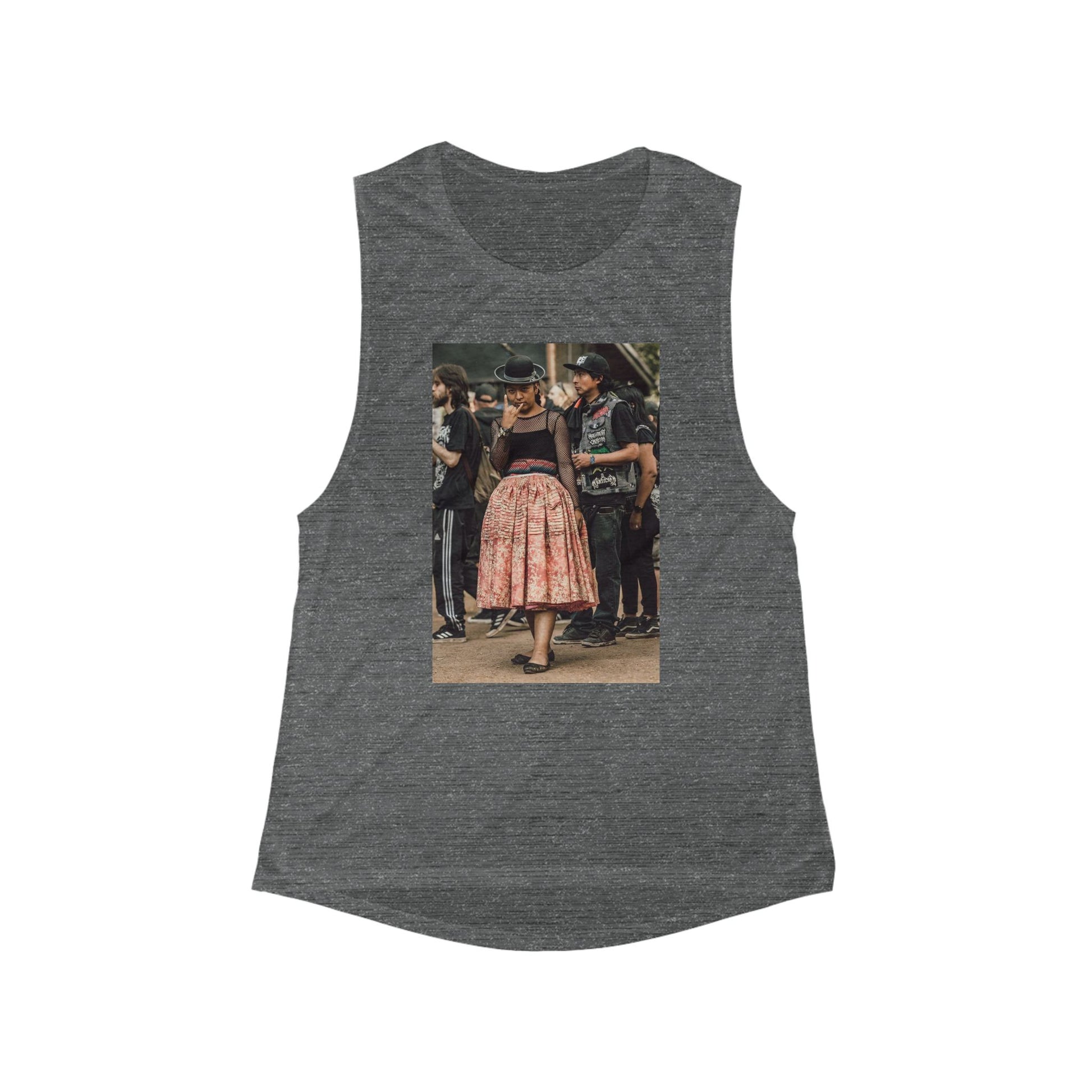 A breezy, lived-in tank that feels like a warm afternoon at a roadside festival. Lightweight and softly draped, this flowy scoop muscle tank carries a vintage-inspired photo print that nods to old-school street music and feminine flair—think full skirts, sun-soaked dances, and the hum of a band tuning up. It layers easily over a bralette or under a denim jacket, moving with you whether you’re wandering market stalls, leaning against a stage fence, or sipping coffee between sets. The relaxed silhouette gives room to breathe without looking oversized, and the subtle scoop neck keeps the look casual but put-together. Wear it with high-waist denim, linen shorts, or a midi skirt to lean into that retro, free-spirited vibe during warm-weather gatherings and local music nights.